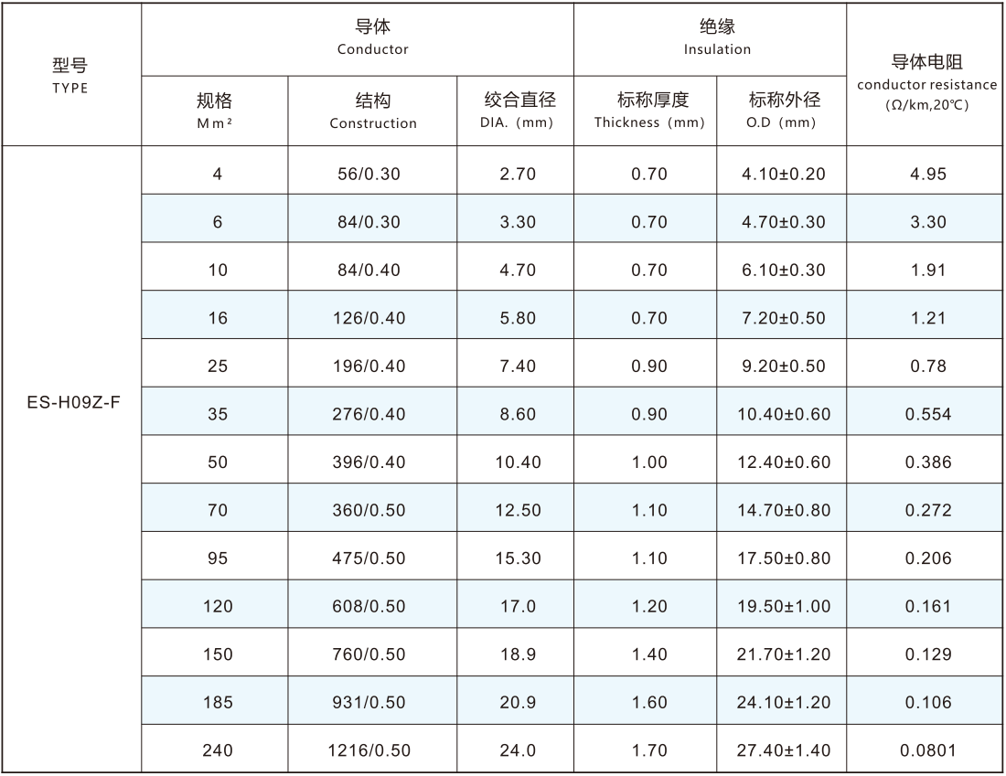導(dǎo)體采用IEC60228-2004標(biāo)準(zhǔn)第五類或六類導(dǎo)體4.0-240mm2鍍錫或裸銅