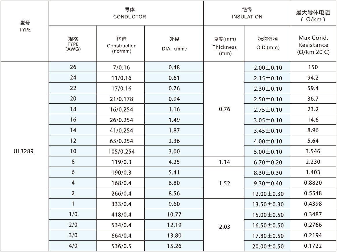 導(dǎo)體使用單根或絞合30-4/0AWG鍍錫或裸銅絲