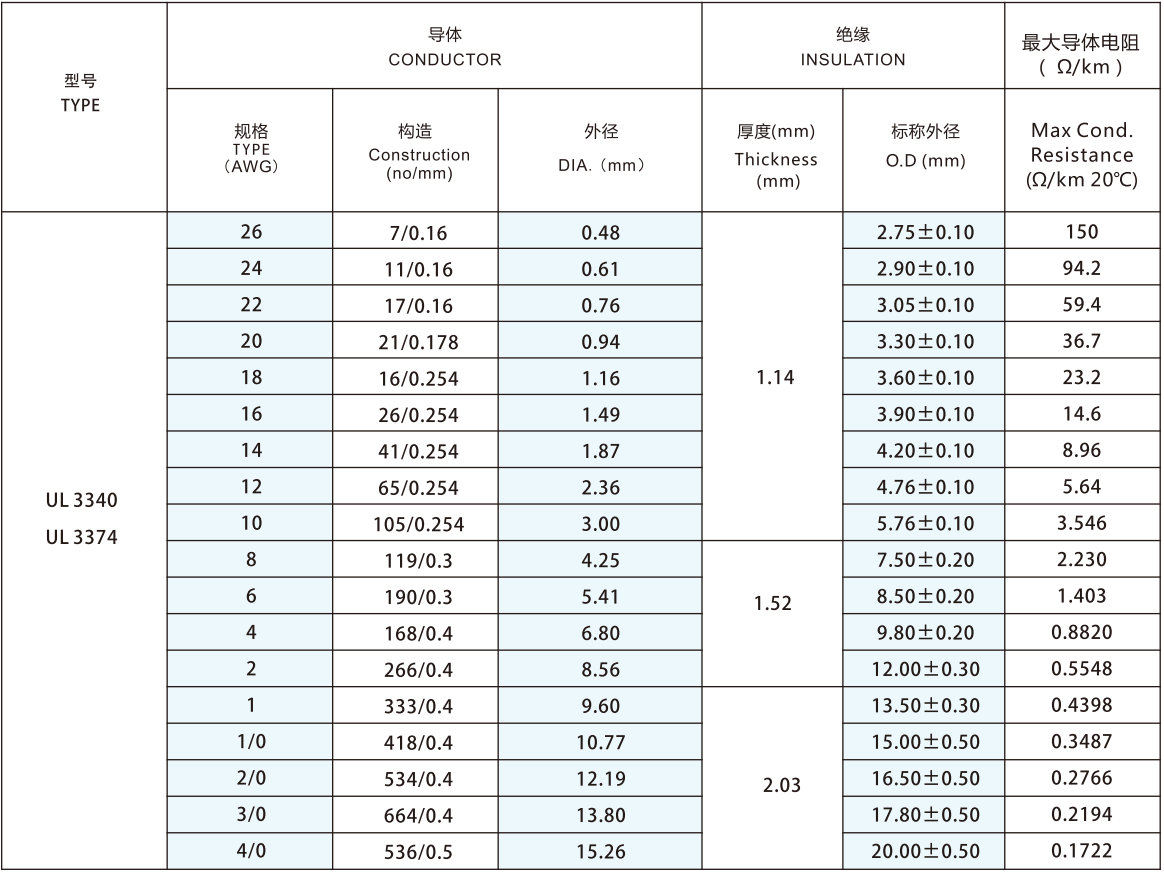 導(dǎo)體使用單根或絞合26-4/0AWG鍍錫或裸銅絲