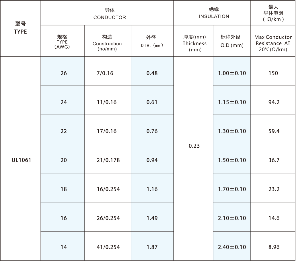 導(dǎo)體采用單根或絞合30-14AWG鍍錫或裸銅絲