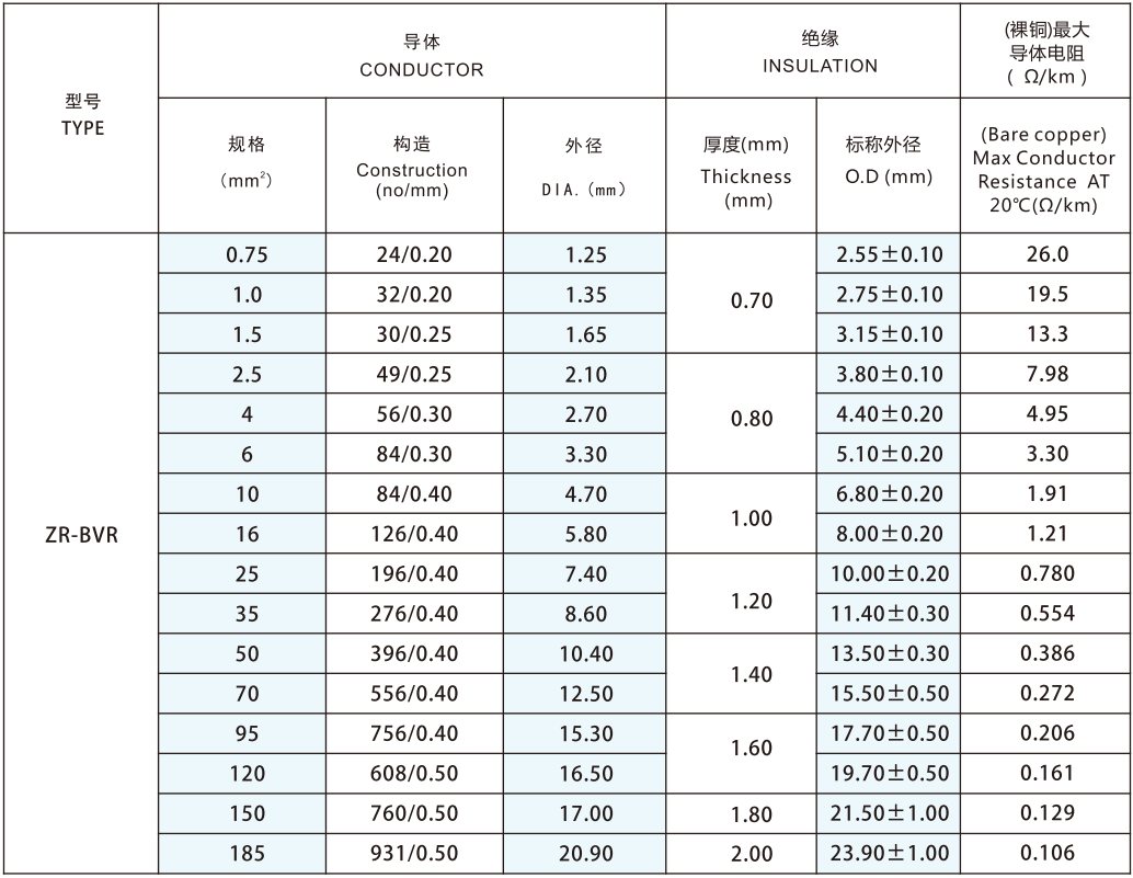 導(dǎo)體采用單根或絞合0.75-185mm2鍍錫或裸銅絲