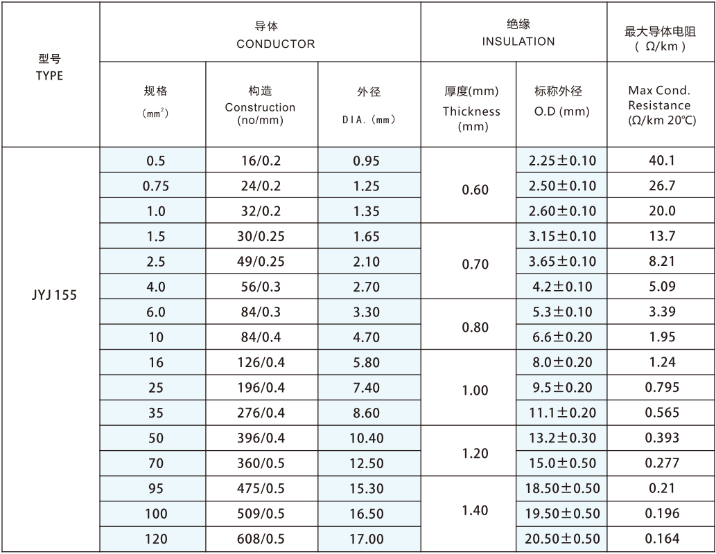 導體使用單根或絞合0.5-120mm2鍍錫或裸銅絲